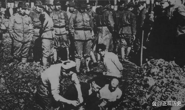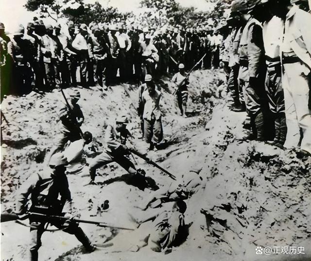 日军把中国俘虏全部赶到城墙下,让他们排成队,冲着墙直接进行机枪扫射,1000个人只用了十几分钟就全部处理完毕。随后日军中队扛着溅满鲜血的刺枪,得意洋洋地走向大街小巷。
