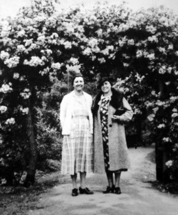 魏特琳(左)在金陵女子文理学院玫瑰园留影。