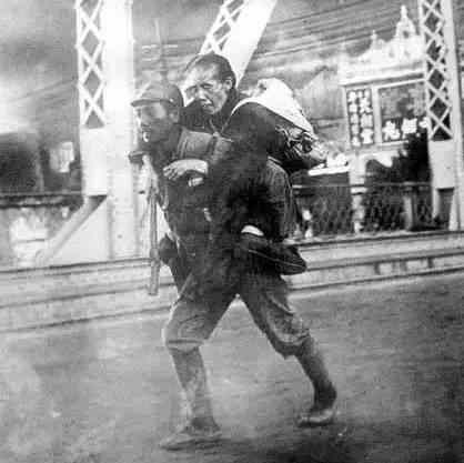 日本士兵“帮助”中国老妪过桥