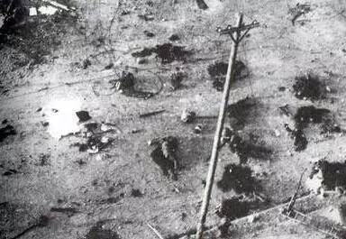 9月26日午夜2时30分,一直等到4时,才响起了“警报解除”的呜呜声。距离中山路上德国黑幕佩尔饭店不远处,在天生药房和远洋办事处的对面,大约有12所中国人的房屋被几枚炸弹炸得精光。房子前面一个防空洞里,除去坐在中间的一个人外,里面所有人都因炸弹爆炸产生的气浪而丧生。中央医院里落下了15枚炸弹。虽然只炸死两个人,但实物损失巨大。在院子里可以看到两个弹坑,它的直径约20米,深5米-6米(500公斤的炸弹)。