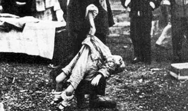 图为一个我国儿童被杀害,手段极其残忍,日本人在中国的土地上犯下滔天罪行!