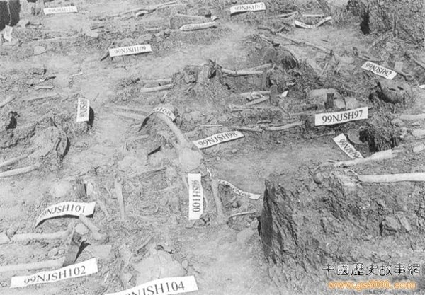 现场尸骨相连成片,呈集中凌乱埋葬,交错层叠关系明显