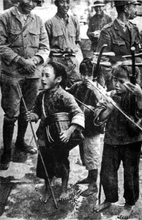 “从上海到芜湖之间的医院里,住着大约10万名中国伤兵。一列又一列满载伤兵的火车将他们送到南京北郊的下关车站。有些人就躺在车站的地上死去,而其他人则踉踉跄跄漫无目的地走在南京城中。一些伤病痊愈的士兵重返前线,而那些折了胳膊或断了腿的终身残废者则只能揣着领到的两美元抚恤金及一纸送伍文书,被遣散回家了。对大多数士兵而言,故乡是遥远的。很少有人能有充足的财力和体力返回家乡。数以千计的中国士兵被长官丢弃不管,在上海——南京一带地区无依无靠——他们或是失明,或是跛足,或是因受伤和感染而腐烂——最终沦为乞丐沿街乞讨。”