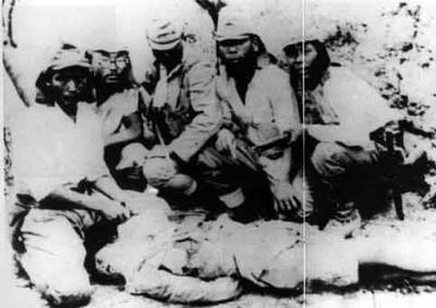 日军士兵正在挖出一个中国人的心脏供下酒用