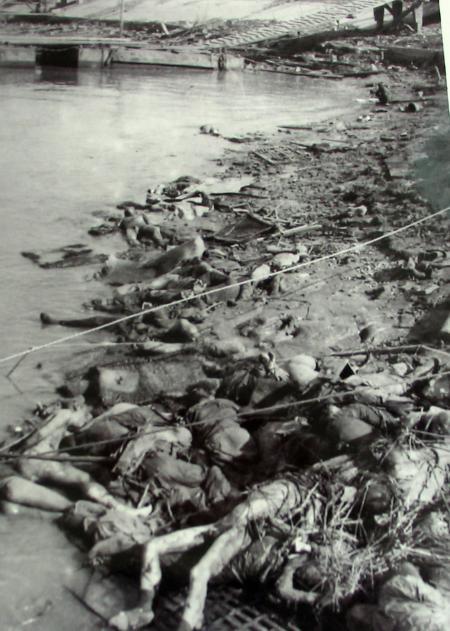 长江边上成千上万的被日军烧焦的尸体