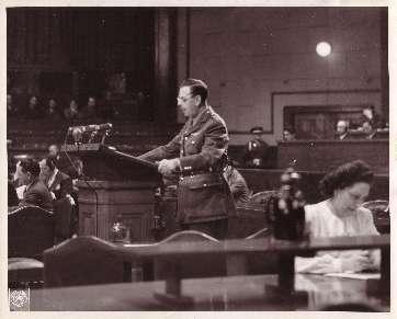 亨利·诺兰在法庭上质证甲级战犯松井石根。 受访单位供图