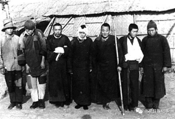 辛德贝格为这张照片写了说明:“我的几个受伤的中国士兵。”