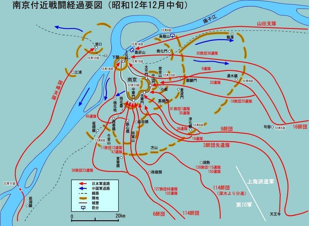 至于上文提到的会同第六师团、第十六师团攻击中华门更是胡说八道。而实际上进攻中华门是第六和一一四师团。从日军的作战地图来看,进攻南京主城只有第六、十六、九、一一四4个师团也根本没有第十八师团。十八师团在12月11日被调往杭州方面。所以配属其作战的靖安军也是不可能进入南京城内,参与大屠杀的。